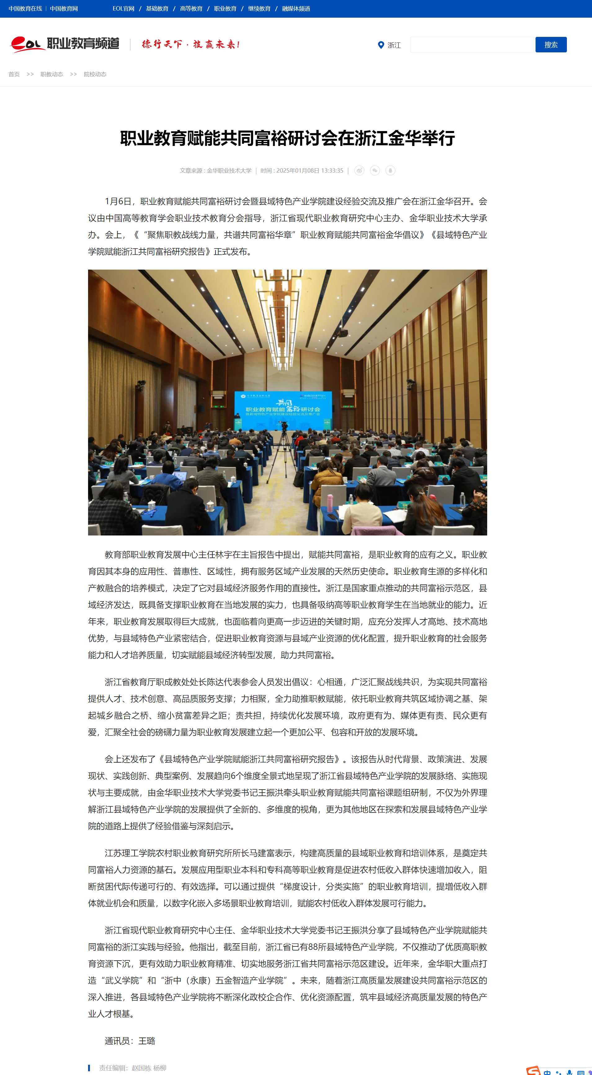 【职教资讯】中国教育在线:职业教育赋能共同富裕研讨会在浙江金华举行